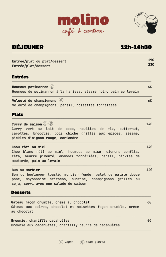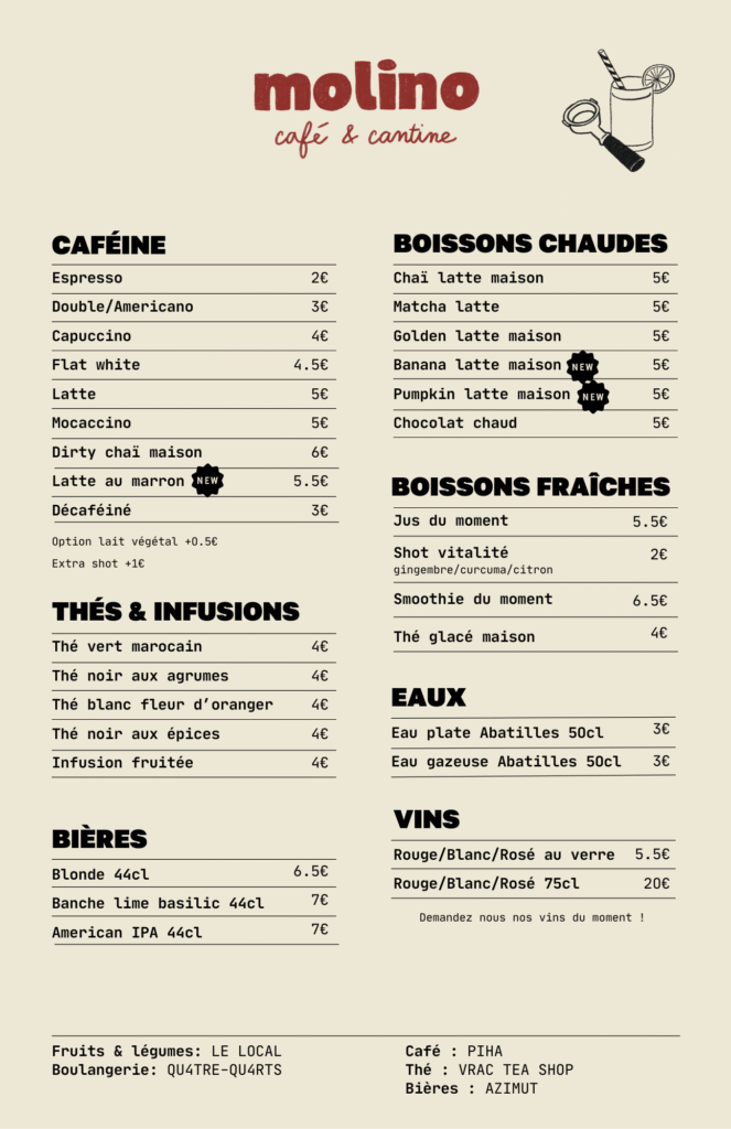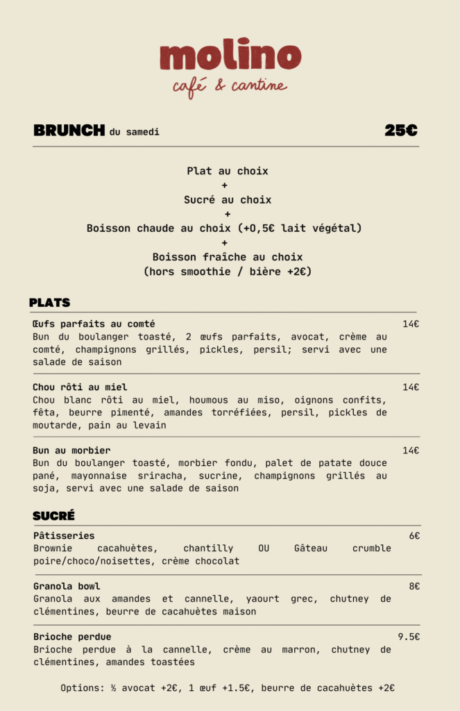 Au Molino, découvrez une cuisine généreuse et 1OO% faite maison, avec des produits frais et de saison. Notre carte évolue au fil des mois et de nos envies !